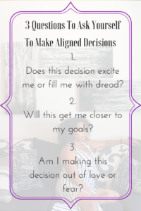 So here are three simple questions to ask yourself in order to make aligned decisions